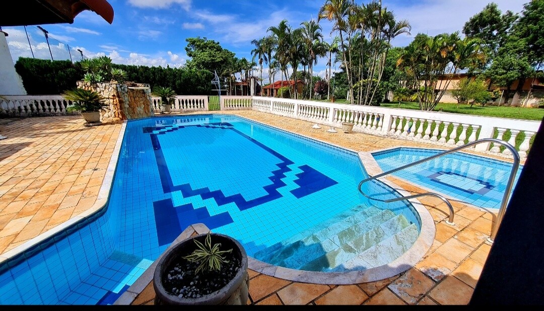 The property covers 5,000 sqm, with a pool near the barbecue area, sports court, and a complete game room (billiards, foosball, table tennis, video games, and card table). It offers mesh Wi-Fi with 600 Mbps fiber internet, satellite TV, a single-floor layout, flat terrain, a kid's playground, and numerous communal spaces, both indoors and outdoors! Located just 1 hour from São Paulo! The house is a mere 10-minute drive from the city center and the Skydiving and Ballooning Center.