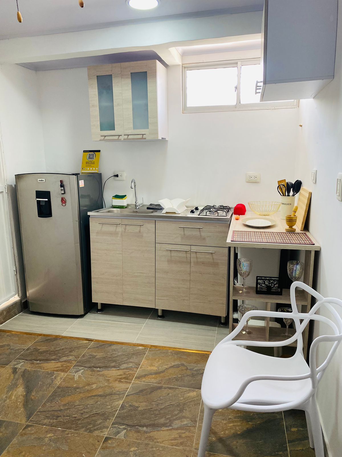 Apartaestudio ideal para una o dos personas con entrada totalmente independiente de la casa, muy cómodo y acogedor para estancias cortas o largas. Tiene todo lo necesario para que te sientas a gusto en tu estadía como una cocina y baño bien equipados, opciones para domicilios de comidas rápidas, desayunos o de productos para preparar tus propios alimentos. El lugar es muy central en caso de desear ir a algún sitio turístico o centro comercial. Ambiente agradable y familiar para disfrutar.