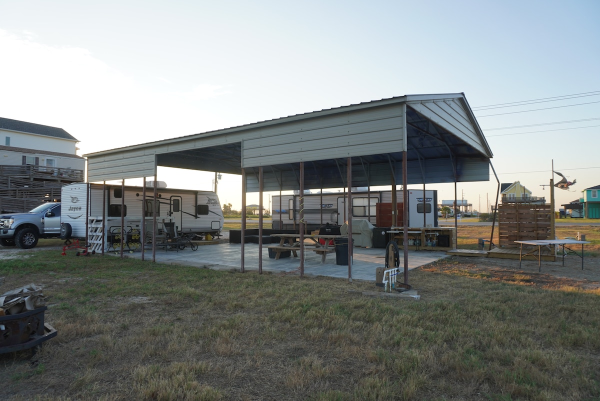 ¿Alguna vez te has preguntado cómo sería vivir a tiempo completo en una autocaravana? Tengo la experiencia perfecta para ti. El Pirates Hideaway RV/Camper se encuentra dentro de nuestro barrio de 10 plazas para autocaravanas, donde todos los vecinos de larga duración están aquí para saludarte y compartir sus historias contigo. ¡Estás a 2 minutos en coche del acceso directo a la playa, justo en el corazón de Crystal Beach, conocido como The Zoo (Barrel 72)! También hay múltiples lugares de pesca. ¡Aprovecha la oportunidad y ven a alojarte con nosotros y descubre de qué se trata vivir a tiempo completo en una caravana!