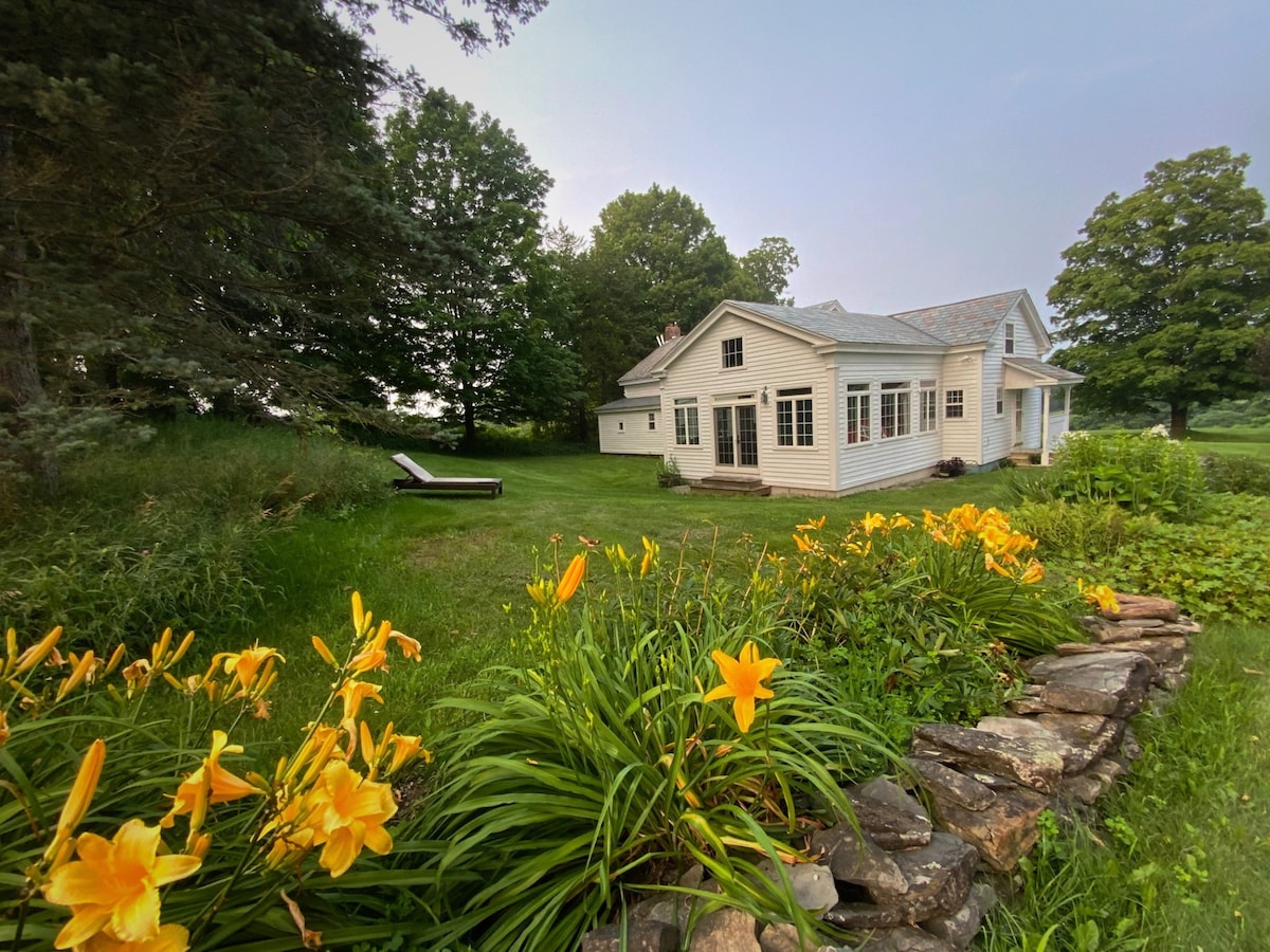 Escapada privada en nuestra granja orgánica de 200 acres con solarium, estufa de leña, cocina totalmente equipada y wifi. Cargador de vehículos eléctricos de nivel 2. Camina hasta Fern Lake, practica senderismo/esquí/ciclismo por nuestros senderos forestales, explora el área recreativa de Moosalamoo a pie, en bicicleta o en kayak. Puedes navegar por el lago Dunmore, nadar en el lago Silver, a 15 minutos del Centro Nórdico Rikert, Blueberry Hill y Middlebury Snow Bowl, a una hora de las estaciones de esquí de Killington, Sugarbush y Mad River. Fácil acceso a Middlebury College, campos de golf, cervecerías locales y restaurantes de primer nivel.
