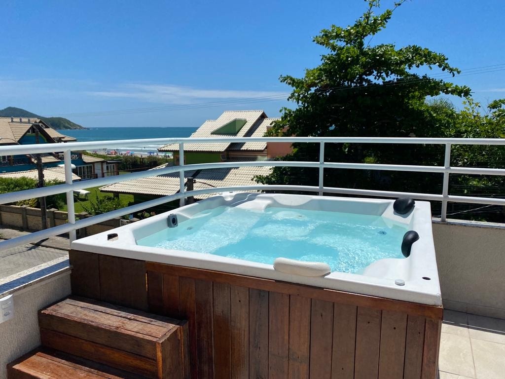 ¡Apartamento con jacuzzi privado y climatizado, hamaca y hermosas vistas al mar desde el balcón! Apartamento de 1 dormitorio, cocina completa (cocina, nevera, microondas, cafetera, tostadora y utensilios básicos), baño y sofá cama en la sala de estar. Hay 1 plaza de aparcamiento gratuita. La propiedad tiene un gran patio, zonas de barbacoa y piscina (compartida). Situado en una zona tranquila. Estamos cerca de las playas: Sepultura, Lagoinha y Retiro dos Padres (5 minutos a pie). Y a unos 15 minutos a pie del centro de Bombinhas.