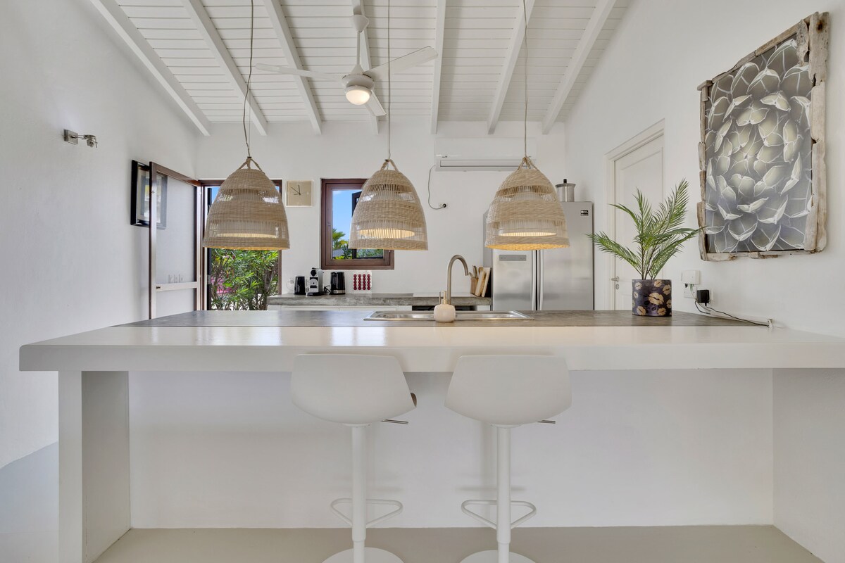 Take a break and unwind at this peaceful oasis.Sea – View private apartment with its own entrance Picturesque ocean- in the most prestigious neighborhood on the island of Bonaire. As you enter this property you will feel and see the sea, ocean and all tranquility that goes with that feeling and a spectacular view of the Caribbean Sea, island of Klein Bonaire, garden with tropical fruits trees mangoes, banana and palm. You can see a spectacular view from your private Balcony.