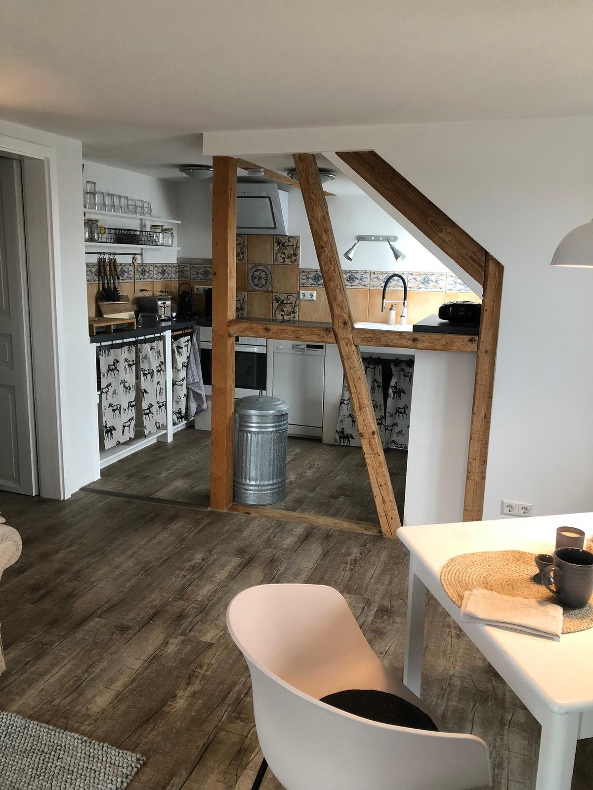 Hermosa y tranquila casa de bloques redondos para 1 a 2 personas (no apto para niños menores de 10 años), área para dormir como estudio abierto, amplio armario, cocina totalmente equipada incl. Lavavajillas, chimenea, baño con ducha, lavadora, TV, WiFi, terraza grande, parcialmente cubierta, gran jardín, cochera cubierta, habitación con cerradura para bicicletas (con carga para bicicletas eléctricas)