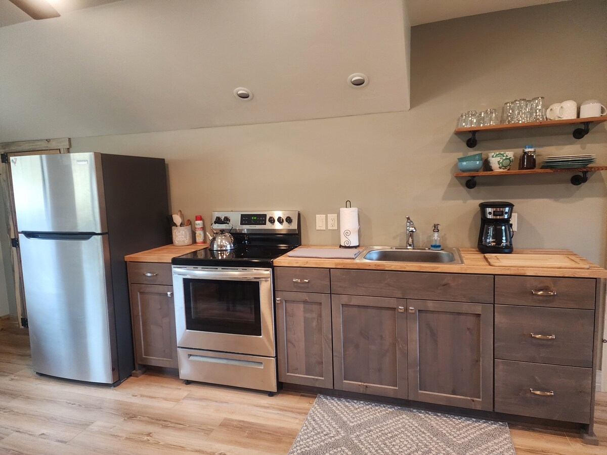 Comienza tu próxima aventura en Pinedale. Relájate con tu familia en este tranquilo apartamento rústico. Hermosas vistas de la cordillera Wind River, cerca de lagos glaciares y senderos para practicar senderismo/pesca. Perfecto para divertirse en familia, andar en motos de nieve, retiros de esquí en pareja, visitas a Yellowstone o Jackson Hole y otras actividades para 4 personas. Está en 40 acres con caballos, vacas, patos, gallinas, ¡una verdadera bienvenida a Wyoming! Se encuentra a 4,5 millas del centro de Pinedale. ¡Espacio disponible para estacionar remolques!