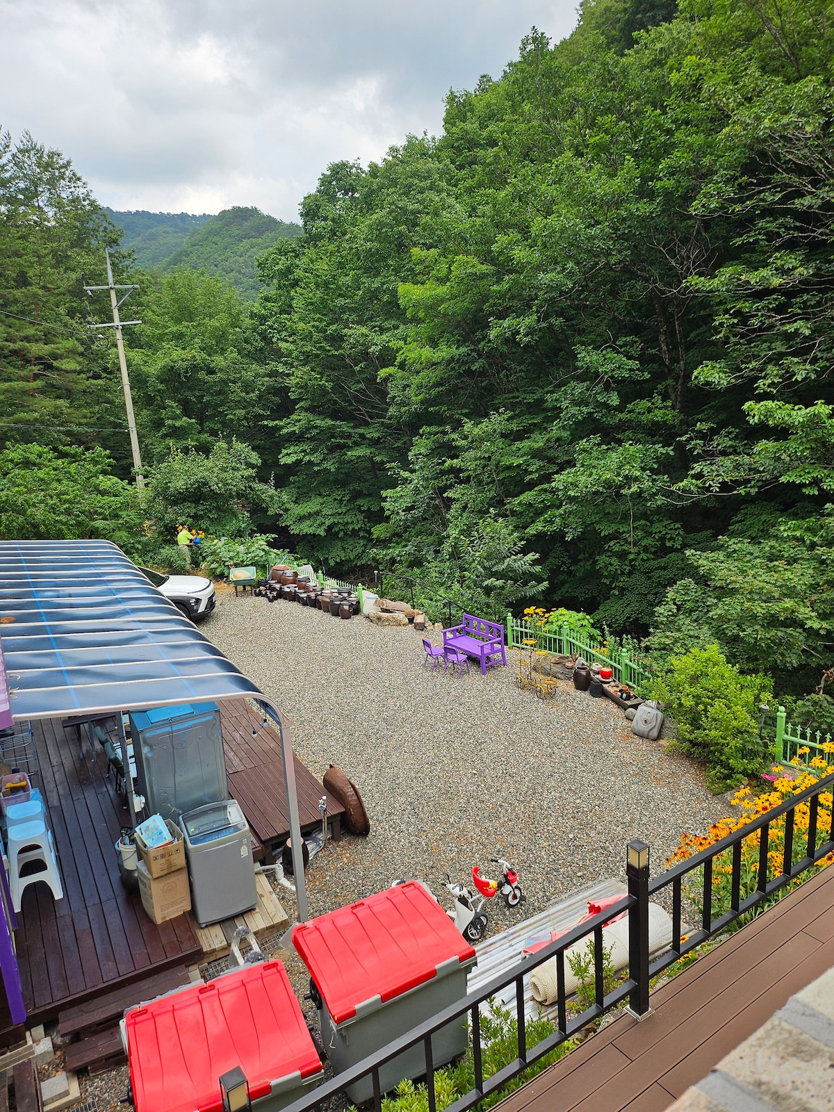 Es un espacio donde se puede disfrutar tranquilamente de la curación en la naturaleza, y es un pequeño edificio separado que consta de un piso doble frente al valle. El interior es pequeño, pero el patio y el sitio son espaciosos, por lo que puedes moverte libremente, y también hay un espacio de barbacoa separado. Tiene capacidad para un mínimo de 2 personas y un máximo de 4 personas. En verano, también puedes pintar carpas en el patio o el valle, y hay un valle frente a la casa, que es bueno para jugar en el agua, y puedes ver el magnífico paisaje de Odaesan durante todo el año. La barbacoa está equipada con parrilla y linterna, y puedes comprar tu propio carbón vegetal y usarlo tú mismo. Alarma de humo del extintor Hay una alarma de fuga de gas. Se proporcionan refrigerador, inducción, microondas, cafetera, secadora, aire acondicionado, ventilador, olla, sartén, utensilios, toallas, champú, jabón, etc.
