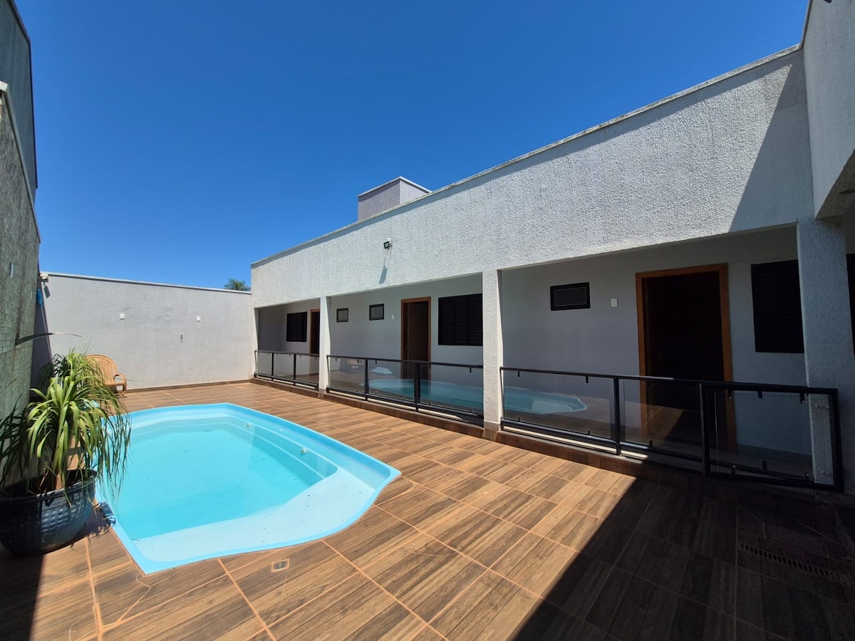 ¿Alguna vez has pensado en pasar el día disfrutando de las maravillas de Bonito y a tu llegada, pudiendo asar un poco de carne, entrar en la piscina y tirar una piscina? Maravilloso, ¿verdad? ¿Y por la noche viendo una película en Netflix, comiendo una pizza hecha en el horno de leña, en un entorno cómodo y con aire acondicionado? ¡Todo esto es posible y está disponible para ti! ¡Tenemos espacio para estacionar el auto de todos los huéspedes y dormir con tranquilidad! ¡La Bonita puede proporcionar toda esta comodidad para ti y tu familia!