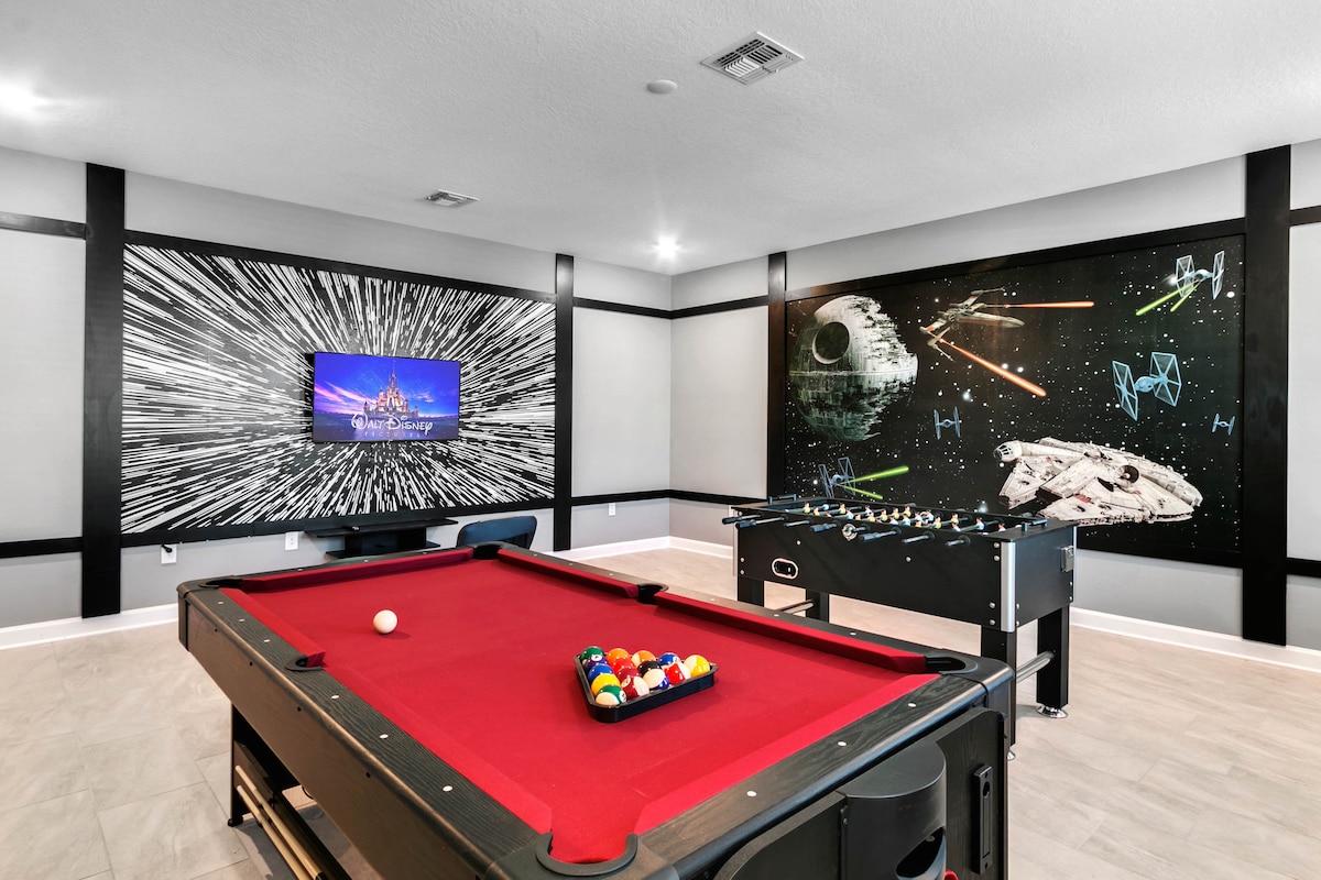El equilibrio perfecto entre DISEÑO CON ESTILO, CONFORT DE LUJO y ENTRETENIMIENTO SIN FIN, bellamente situado con impresionantes vistas en el extenso Reunion Resort de 3,5 millas cuadradas. Tendrás tu propia piscina privada, spa con cascada, sala de juegos y cine de STAR WARS con pinball, juegos de arcade clásicos y karaoke, sala de niños de MARVEL con tobogán de tubo y literas dobles, la última Xbox Series S, una amplia terraza de piscina de 2000 pies cuadrados, chimenea e incluso un armario de HARRY POTTER escondido debajo de las escaleras, a pocos minutos de Disney.