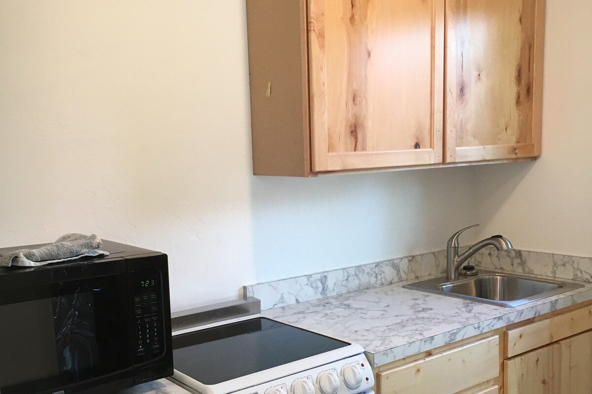 Vistas a las montañas y halcones volando sobre ti. Al alojarte aquí estarás a aproximadamente 1 milla de nuestro encantador centro de la ciudad, donde hay varios restaurantes locales que ofrecen una variedad de deliciosas comidas o, si prefieres cocinar, la cocina de tamaño completo tiene todas las necesidades para ti. Incluye una olla arrocera y una olla de barro. El baño tiene una lujosa ducha/bañera de 6' de largo. Este es el lugar ideal para relajarse después de una larga jornada de juegos en las montañas o de visitas turísticas.