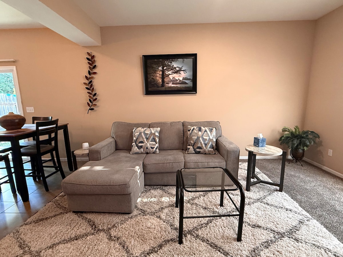 Apartamento de 2 dormitorios totalmente renovado con camas nuevas, cocina moderna y elegante decoración de diseño. Disfruta de una estancia acogedora y hogareña a pocos minutos de Mizzou, Hollywood Theaters y tiendas de comestibles. A solo 2 minutos a pie de Grindstone Trail. Perfecto para estancias cortas o largas: ¡grandes descuentos para reservaciones prolongadas!