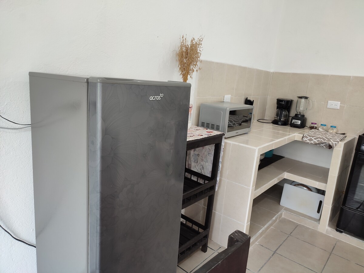 Loft independiente con entrada automatizada, en planta alta, cuenta con aire acondicionado, wifi de 100mbps y netflix. Tiene cocina con estufa, refrigerador y utensilios. No se comparte ningún área.