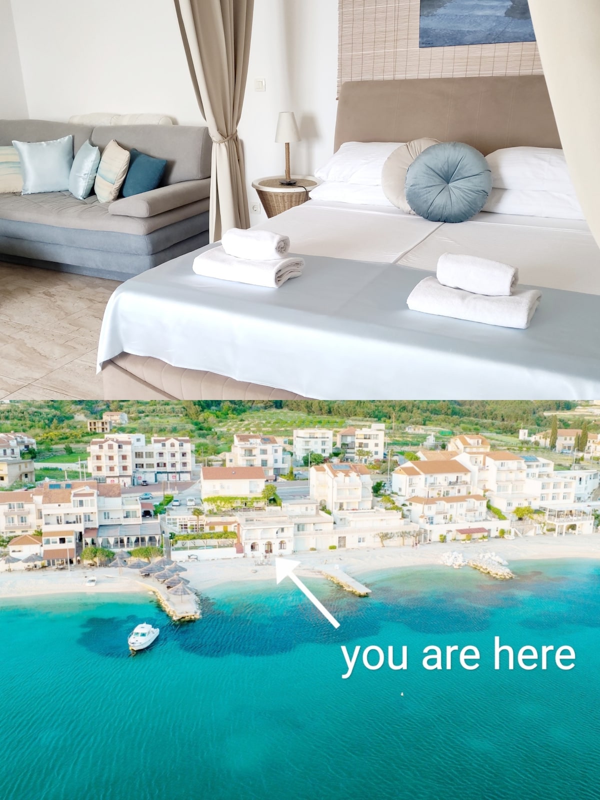 Nuestro estudio de playa está situado directamente en la maravillosa playa, en un pequeño pueblo cerca de Split. Te encantará este lugar porque puedes saltar en el mar cristalino directamente desde tu cama; por el aroma del mar, los maravillosos atardeceres y amaneceres, las mágicas vistas de verano y la comodidad. Nuestro lugar de playa es ideal para parejas y familias con hijos y amigos peludos (mascotas).