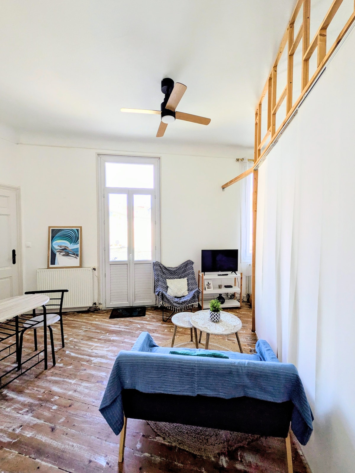 Profitez d'un logement élégant et central proche des ruines du Palais Gallien. Doté d'un sauna afin de vous relaxer et d'une terrasse, cet appartement de 50 M2 est idéal pour visiter Bordeaux. Proche de l'hyper centre ville, du tram et des commerces notre T2 possède une chambre ouverte sur la salle de bain, une belle pièce à vivre, une cuisine équipée ainsi qu'une terrasse sans vis à vis. La clim, le wifi et une place de parking complètent ce bien d'exception dans un quartier prisé de Bordeaux.