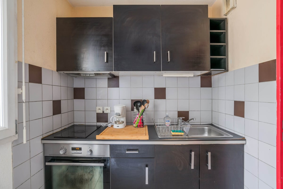 Apartamento de 33m2, que apreciarás por el distrito y la calma. Perfecto para parejas y familias. Cerca del tranvía. Apartamento renovado y para no fumadores, con capacidad para 4 viajeros. 1 cama (140 cm) y un pequeño sofá que se puede convertir en una cama (132 cm). Cerca del supermercado y la panadería (100 m) Té, café disponible Acceso a la piscina del 15 de junio al 15 de septiembre. Bienvenido a nuestra casa :)