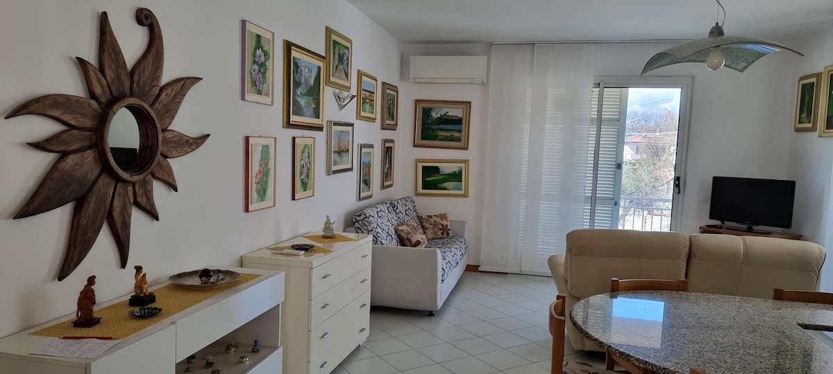 RELAX assicurato con le PROMOZIONI SETTIMANALI. Adatto anche a famiglie di 4/5 persone:un alloggio tranquillo a 10 minuti dalle spiagge di Marina di Carrara e Marinella, in una zona strategica per visitare le 5 Terre, le Alpi Apuane con le famosissime cave di marmo di Carrara e la vicina Versilia. L'appartamento ha ingresso indipendente, 2 camere di cui una matrimoniale con possibilità di letto aggiuntivo e una con 2 lettini singoli,bagno, soggiorno con cucina e un'ampia terrazza pranzabile.