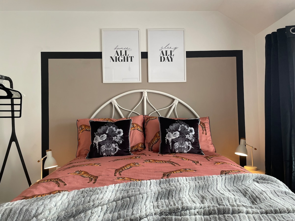 Apartamento loft independiente, elegante, con baño privado, cocina y estufa de leña en el último piso de una casa privada en una zona verde y frondosa de Withington, al sur de Mánchester. Wifi, TV inteligente, cama tamaño king, ropa de cama de buena calidad, cocina totalmente equipada con lavavajillas. A cinco minutos a pie de todos los servicios, incluido el servicio de autobús frecuente las 24 horas al centro de la ciudad; a 15 minutos a pie de la parada de tranvía (a Old Trafford o al Etihad); a 12 minutos a pie de la estación de tren al aeropuerto o al centro de la ciudad. Aparcamiento en la calle.