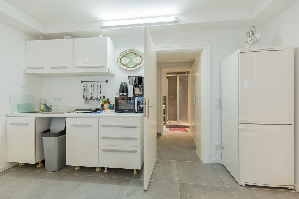Escápate a nuestro apartamento cuidadosamente diseñado, ideal para dos. Ubicado en un barrio tranquilo, pero convenientemente conectado a una estación de S-Bahn a pocos minutos. Al otro lado de la calle, un parque sereno ofrece una vista tranquila. Con una entrada privada a la calle, la accesibilidad es sencilla. Disfruta de la terraza para comer al aire libre o acércate al interior con amplias ventanas. Recientemente renovado con meticuloso cuidado, encuentra comodidad y estilo en cada detalle.