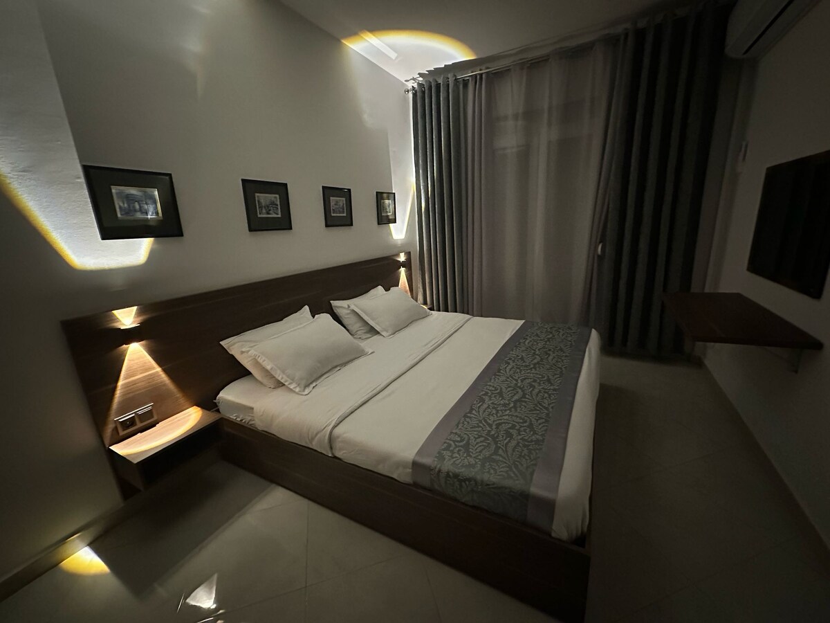 Moderno departamento de reciente construcción, ubicado en el quinto piso (sin ascensor). Ofrece todo lo que necesitas para una estancia cómoda, incluido wifi de alta velocidad, camas acogedoras y todos los servicios básicos. Con una ubicación ideal en el corazón de Béjaïa, el departamento está a solo 5 minutos a pie del Golden Hotel, el centro comercial Ritaj (1,3 km) y la famosa pastelería Benchikh. A unos 2 km de distancia, en la Rue de la Liberté, también encontrarás la sede de Wilaya rodeada de una variedad de restaurantes y heladerías.