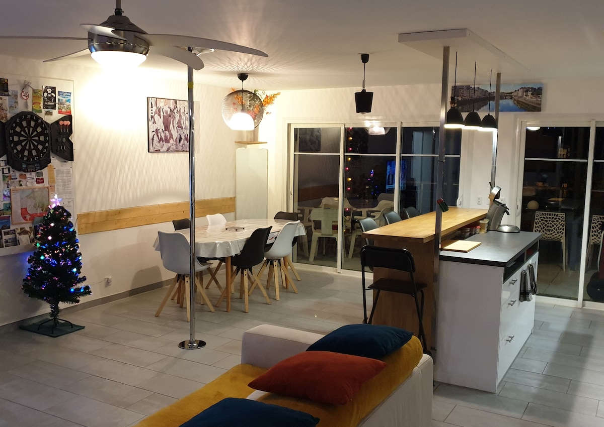 Agradable T5 bio de planta baja integral en RDJ a las puertas de Bayona y cerca de las playas. Ideal para vacaciones, reuniones familiares, seminarios, teletrabajo, inmersión. Gran sala de estar y 4 dormitorios bordeados por una gran terraza sur sin vecinos, con vistas a una pequeña pradera arbolada (SPA bajo petición fuera de temporada... y ciervos con un poco de suerte y discreción). Tiendas, autobuses, carriles para bicicletas y el lago de Castillon en las inmediaciones. Se aceptan hablantes de inglés.