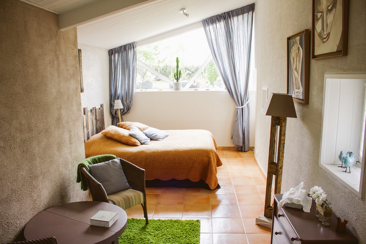La Homestay Bellevue está perfectamente expuesta y goza de una vista espléndida, desde el amanecer hasta el atardecer, sobre el valle del Dronne. El alojamiento al aire libre con la etiqueta 3 ***, se encuentra en la planta baja de una casa contemporánea con entrada independiente y acceso al jardín. El alojamiento consta de un dormitorio grande con baño, una cocina y una terraza cubierta y no cubierta con vistas al jardín. Un verdadero nido tranquilo, acogedor y cómodo. Alojamiento sin salón ni TV.