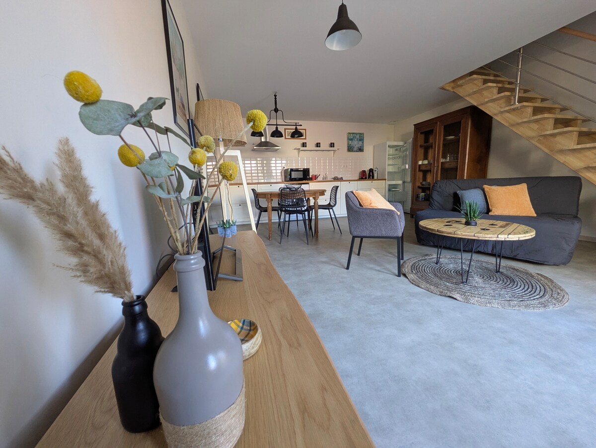 Encantador apartamento independiente Bienvenido a nuestro acogedor apartamento totalmente equipado, situado al final de nuestra gran casa. Disfrutará de una sala de estar con sofá cama, un amplio dormitorio, una cocina funcional y un baño con ducha. Ideal para una estancia tranquila, en plena naturaleza y a 10 minutos de los servicios y autopistas Si lo desea, puede disfrutar de los muebles de jardín y una mesa y sillas .