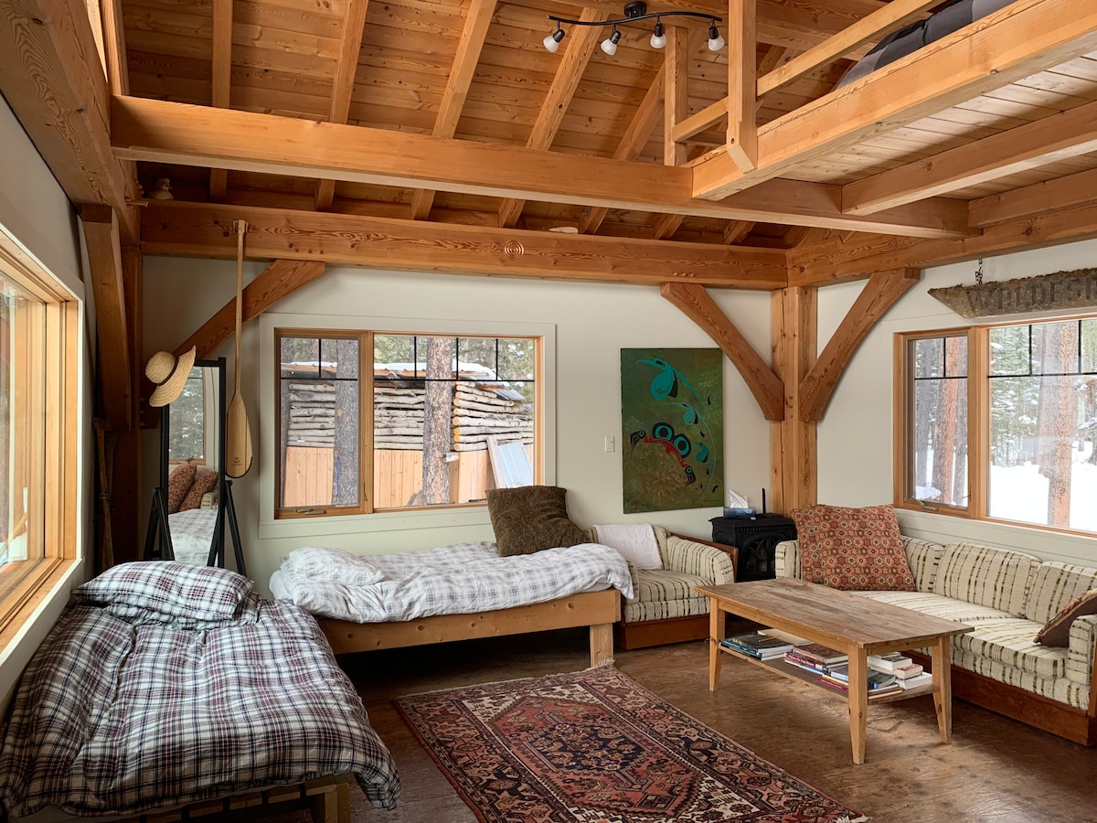 Cabaña en el bosque. Acogedora, cómoda y tranquila cabaña de lujo en 80 acres. Rodeada de bosque antiguo y hermosas vistas a las montañas. El dormitorio principal con baño está situado en el nivel superior con una tranquila vista al bosque. La planta baja ofrece un sofá cama en una gran sala de estar con ducha y baño adyacentes. Los huéspedes también pueden disfrutar de la pequeña cabaña con cama individual, en la cima de la colina, que ofrece vistas despejadas a la montaña. Rutas de senderismo y paseos a caballo cerca.
