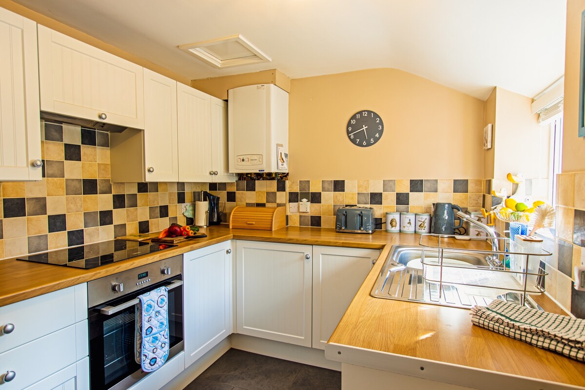 We are a family that love living here and have a self contained flat beneath our house, with separate access, FREE PRIVATE driveway parking, private garden, patio, BBQ all for you to enjoy. If want to walk, swim, sightsee, chill, cycle, eat out or shop we have have everything in strolling distance. You will have full cooking facilities, dishwasher and a washer dryer. The en-suite bedroom has super comfy king size bed. We feel very lucky to live here and would love you to enjoy it too