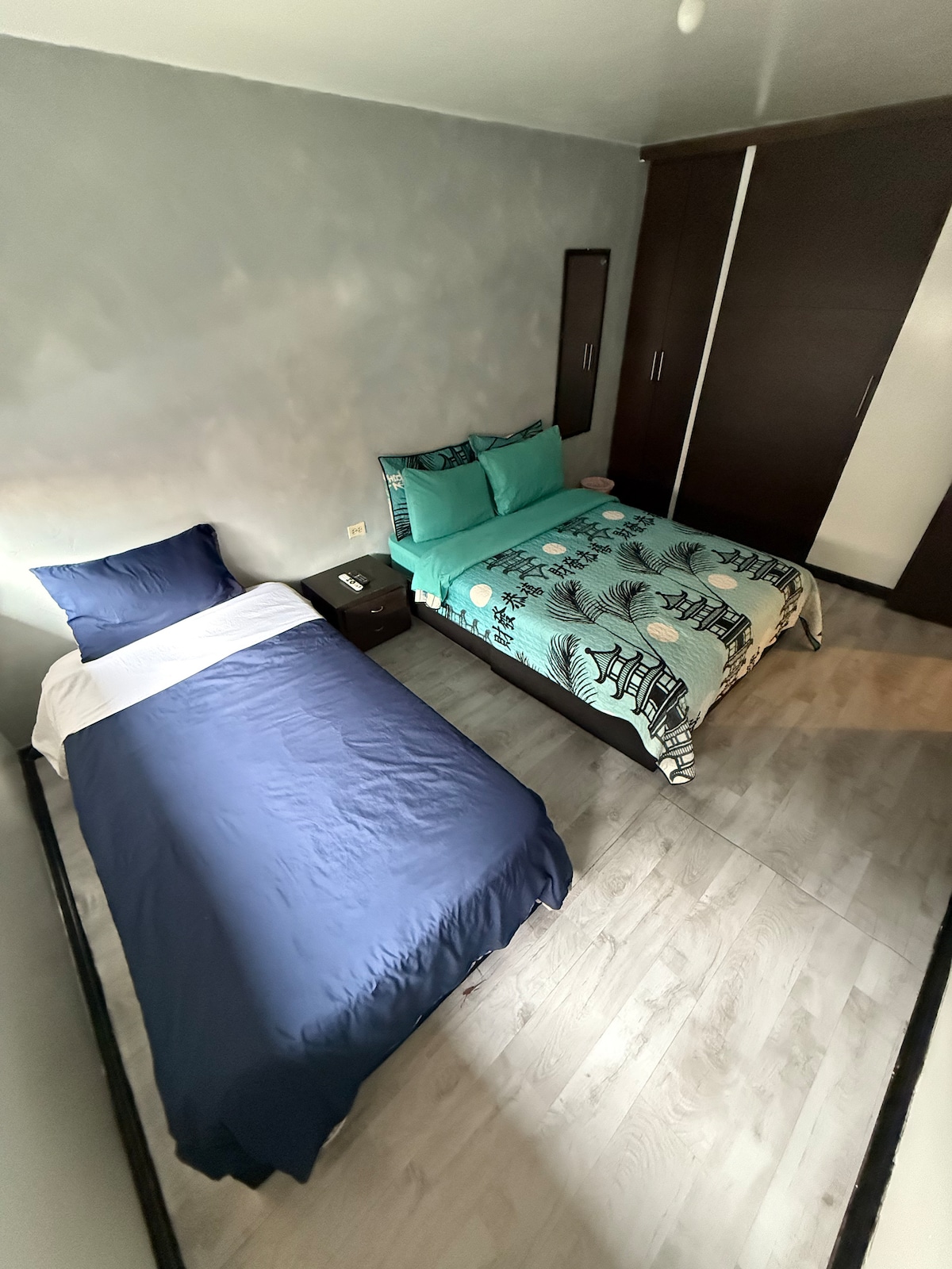 El alojamiento cuenta con dos habitaciones diferentes: Habitación Aura y Habitación Aqua. En las fotos del anuncio podrás ver ambas opciones. 👉 Importante: La reserva corresponde a UNA SOLA HABITACION, que será asignada según disponibilidad en el momento del check-in. Ambas habitaciones ofrecen las mismas prestaciones: Cama matrimonial cómoda Baño privado Closet amplio Espacio de trabajo ideal para portátil Cafetera, microondas, mini nevera y tostadora Utensilios básicos de cocina TV