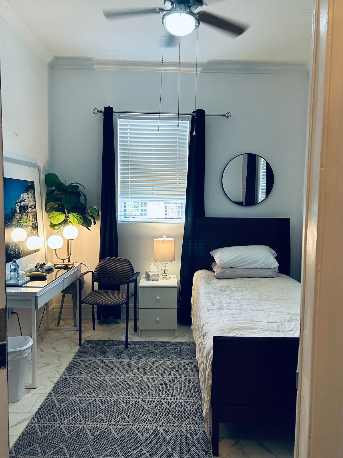 Viajero individual y necesito un lugar para descansar la cabeza. A 10 minutos a pie del Hospital General de Brantford. A 15 minutos a pie de la Universidad de Laurier y la universidad de Conestoga. 1 dormitorio de 11x11 pies con baño privado... cama individual para 1 persona. Esta es una suite de invitados con baño privado, sin bañera. Entrada independiente de la casa principal con estacionamiento gratuito. Este alojamiento tiene una cámara Ring exterior en el área de estacionamiento. Televisión inteligente en la habitación para streaming. No se proporciona comida. Agua embotellada/ café /té disponible.