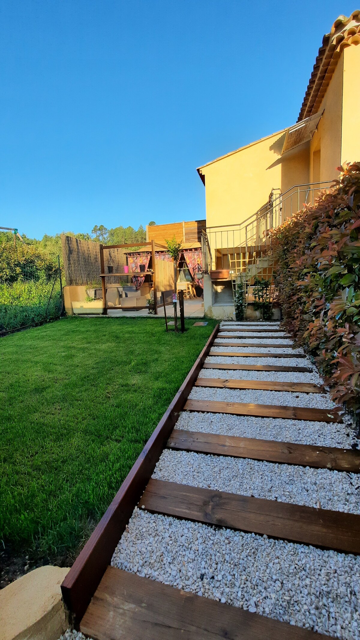 Casita en plena vegetación reformada, en una propiedad de una hectárea. Ideal para una estancia en plena naturaleza. Salida para excursiones en bicicleta o a pie. Está a 15 minutos del lago de Quinson y a 35 minutos del lago de Sainte Croix. Puede visitar todos los pequeños pueblos típicos provenzales como Cotignac, Salernes, Aups … en un radio de -20 minutos. El vasto terreno le permite disfrutar de una calma absoluta. Estamos en el lugar y a su disposición para que su estancia sea perfecta.