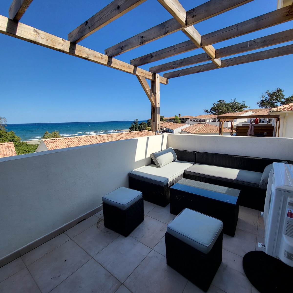 Sopramare T2 (25 m²) terraza superior con vistas al mar y aire acondicionado