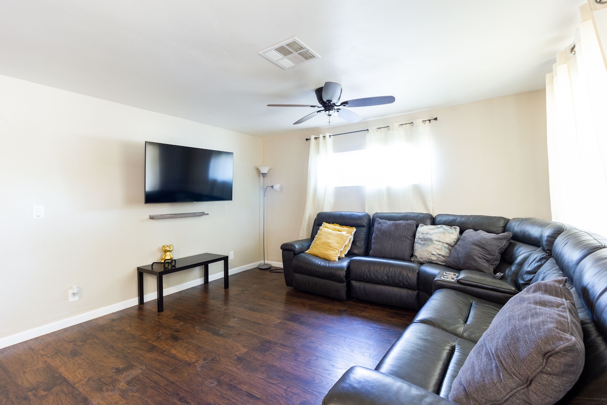 Te damos la bienvenida a nuestra vivienda, disfruta de: - TV Roku 4K de 75" con Netflix, Prime, Hulu, Disney+ - 1 cama tamaño queen y 1 sofá cama (tamaño queen). - Lujosa ducha con efecto lluvia y baño moderno. - Cocina totalmente equipada, equipada y limpia - Lavadora, secadora. - Wifi dedicado, rápido y seguro (300 Mbps). - Espacio de trabajo exclusivo con monitor doble. - Autoregistro - Armarios espaciosos. - Vaporizador, secador de pelo, desinfectantes - Luces cálidas atenuables para el ambiente - Cargador para vehículos eléctricos de nivel 2. - Conveniente ubicación cerca de ECRMC y tiendas comerciales.