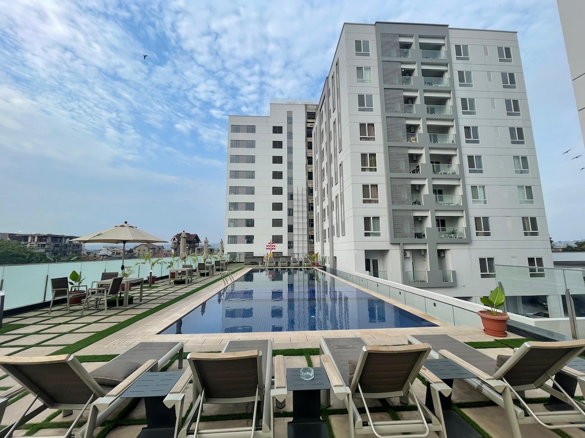 Vive lo mejor de Kinshasa desde nuestro impresionante estudio con balcón A solo 2,8 km del Pullman Hotel Gombe, ofrece > Electricidad y agua caliente las 24 horas, los 7 días de la semana > Wifi > Piscina > 2 bañeras de hidromasaje, gimnasio, sala de vapor, sauna > Sala de juegos (piscina y tenis de mesa) > pista de atletismo al aire libre > Disfruta de comedor al aire libre y área de asado. Las tiendas de la planta baja incluyen Cold Stone Ice Cream, supermercado, farmacia, restaurantes y más. Hermosa área de recepción con seguridad G4S. Aprobado por expatriados ¡Reserva para una estancia inolvidable!