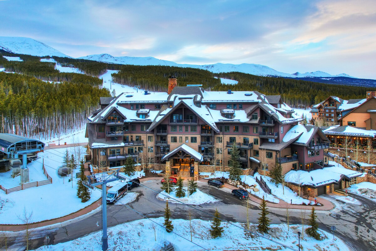 ¡Este condominio de lujo en un centro vacacional está listo para organizar tus vacaciones de esquí, golf y montaña! El sueño de un esquiador junto al telesilla Snowflake con servicio de traslado privado a Peak 9 y la góndola. A 10 minutos de Breck Golf Cub - Campo de diseño Jack Nicklaus. El centro vacacional ofrece alquiler de esquí en el lugar, traslado privado, lavandería gratuita y estacionamiento gratuito en el garaje. Sumérgete en jacuzzis al aire libre durante todo el año, piscinas climatizadas, sauna y salas de vapor. Visita el gimnasio y reserva tus noches de teatro gratuitas. Estaciona y juega en los días de llegada y de salida.