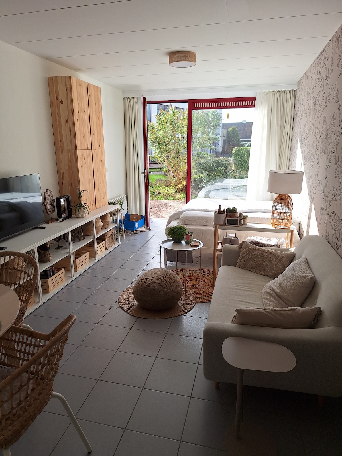 Nos gustaría darte la bienvenida a nuestra nueva casa de vacaciones de 4 estrellas, equipada con terraza, baño, cocina y wifi. Zona rural justo al lado de Brujas. «t Huys» está en la planta baja y cuenta con 2 dormitorios, sala de estar y comedor y baño. La atractiva decoración y las amplias habitaciones aportan comodidad y máxima relajación. Puedes hacer uso de una zona de bienestar con ducha de efecto lluvia, sauna y bañera de hidromasaje de leña por un cargo adicional. 't Huys tiene capacidad para 2 adultos y hasta 3 niños.