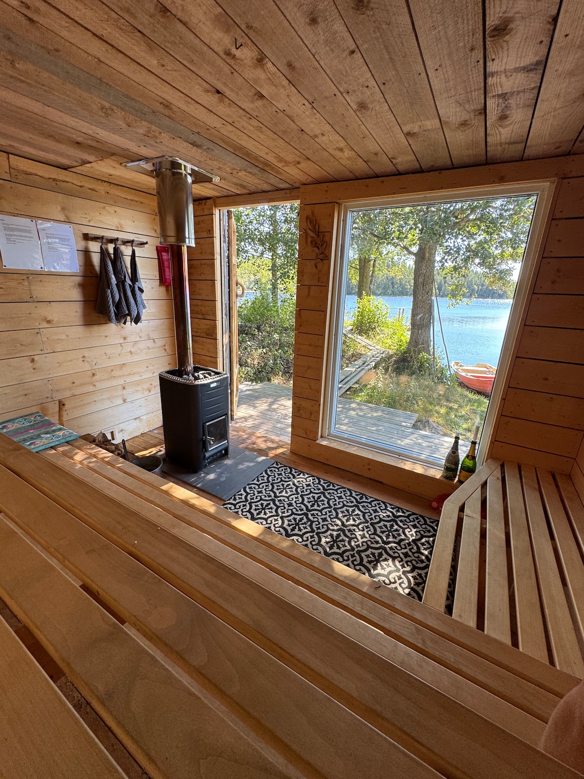 En nuestra granja a las afueras de Sävsjö en Småland, puedes alojarte en una moderna casa de madera construida a partir de 300 troncos de madera de tormenta, que también fue suficiente para una sauna de troncos. La casa de vacaciones tiene nudos laxos y entre los troncos hay ropa de cama. La casa se encuentra ubicada en un entorno pintoresco. Vivimos cerca de nuestros animales y esto tienes la posibilidad de participar. La sauna de madera está incluida. Precio: 698 SEK por persona y noche. Oportunidad de pesca a 150 m Baño de aventura Sävsjö 15 km Tienda Mosse a 60 km High Chaparall 70 km Glasriket 80 km Astrid Lindgren's World 90 km