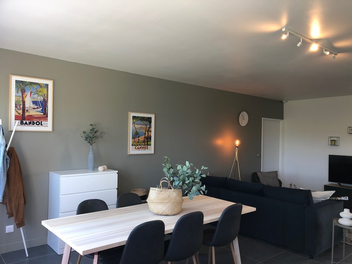 Luminoso apartamento privado cerca de todos los servicios en un pueblo tranquilo. Alojamiento totalmente equipado, con una cocina equipada. Parte privada: 2 dormitorios con cama doble, sala de estar, salón con 1 sofá cama de 2 plazas y 1 sofá cama de 1 plaza, cuarto de baño, lavadero, despensa, aseo y lavandería. equipo de bebé ( cuna/cambiador ) Zonas comunes: jardín (barbacoa, juegos infantiles🏓). Se proporcionan de forma gratuita según disponibilidad: 2 bicicletas, consola de juegos, juegos de mesa.