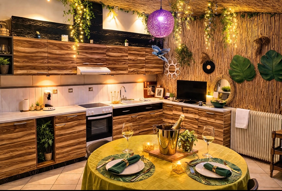 ✨ Descubre el Mirage Tropical, un paréntesis refinado a orillas del Loira 🌴. Disfrute de un spa, una mesa de masajes, una elegante terraza y un exótico espacio selvático para escapar. Diviértase jugando a los dardos, comparta un aperitivo exótico o relájese en un ambiente único. Por la noche, la habitación se ilumina con colores cautivadores para un momento elegante y romántico💖. Aquí, cada detalle sublima su estadía para crear recuerdos memorables.🌴❤️❤️💕💕💕👄🫂❤️
