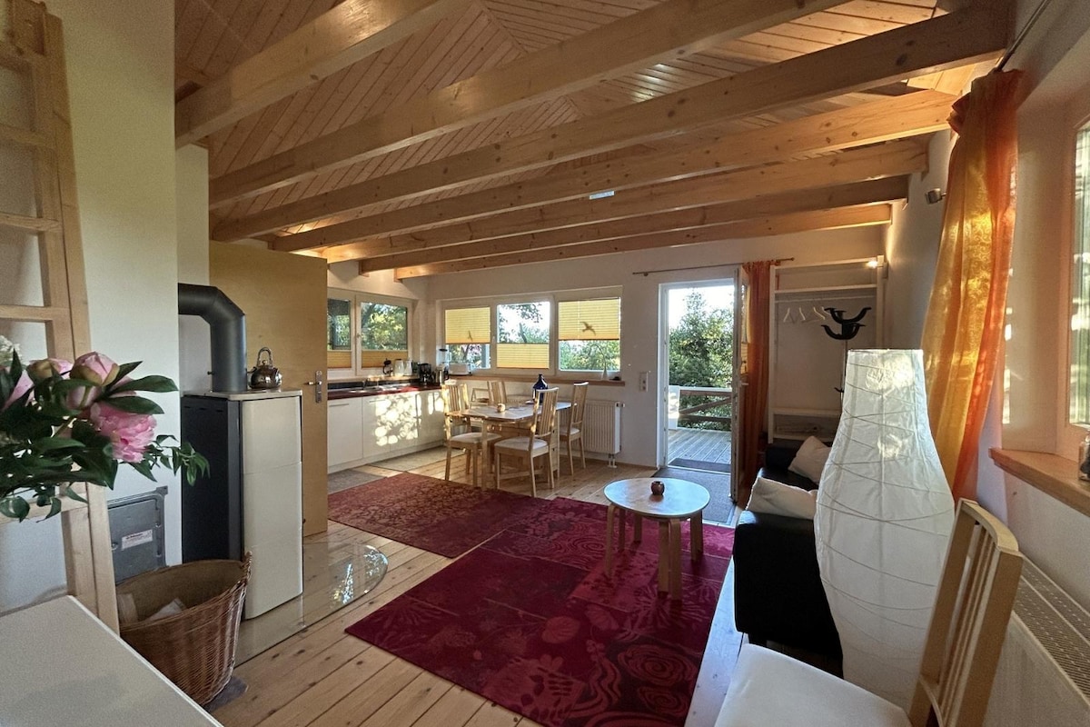 Nuestros huéspedes tienen el piso superior con 90 metros cuadrados para ellos solos. Una pequeña segunda puerta principal conduce hacia arriba. Hay una cocina-sala de estar con una cama individual, un dormitorio grande con una cama doble de 160 cm, otro dormitorio con una cama doble de 140 cm, la sala de la chimenea, un pequeño balcón y un baño con bañera y ducha. Vivo en la planta baja con mi novio y nuestros 3 GATOS, no puedo descartar que los 3 habitantes peludos te visiten si tienes la puerta abierta.