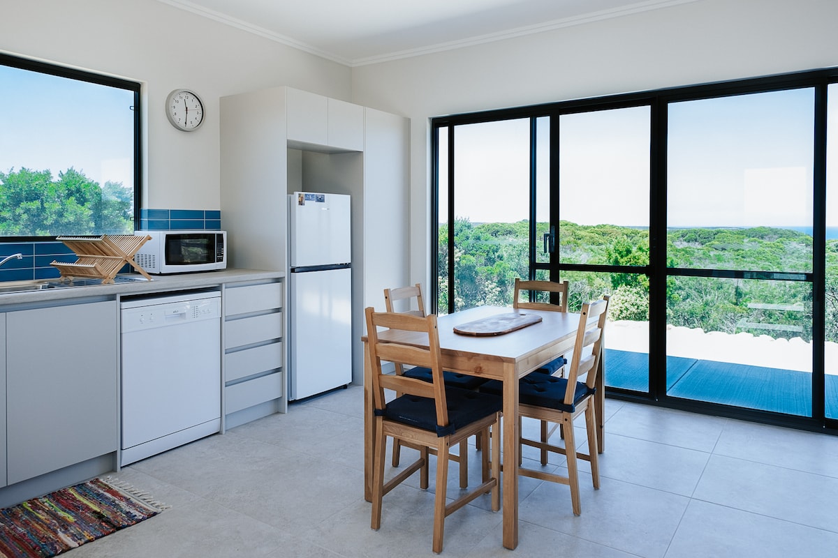 The Ridge se encuentra en 12 acres de bosque nativo con vistas ininterrumpidas al océano Austral y ofrece alojamiento de lujo para un máximo de 6 huéspedes. La propiedad está a poca distancia a pie de dos de las zonas de playa y surf más populares, Blossoms Beach y Native Dog Beach. El diseño solar pasivo ofrece comodidad durante todo el año para familias y parejas por igual, con sala de estar de planta abierta y amplio espacio para comer en el interior/exterior y una acogedora chimenea de leña para las noches de invierno.