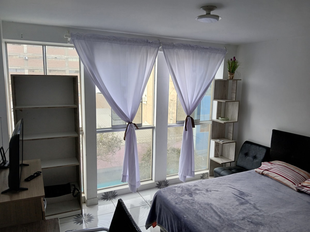 Departamento de estreno completo totalmente equipado que esta ubicado en una zona estratégica de avenida principal en Lima, Perú. Con áreas comunes en el edificio para que hagan de tu estancia una experiencia única. Está creado con la intención de ofrecer un espacio cálido y acogedor a mis huéspedes, además de unas vistas panorámicas excepcionales que te permitirán disfrutar de las puestas de sol y de la belleza de la ciudad.