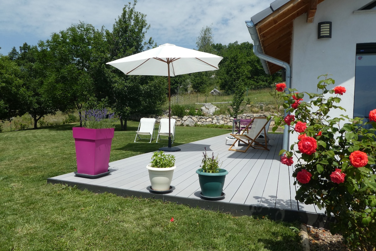 Joli T3….3 ⭐️⭐️⭐️ au rez de jardin d’une villa. Grande terrasse avec salon de jardin, jacuzzi, barbecue. Propriété clôturée et fermée. Vue imprenable sur le lac et les montagnes, à deux pas d'un rocher d'escalade, de la forêt et de nombreuses balades. La Maison paisible et authentique, vous accueille dans une ambiance douce, épurée et chaleureuse. Ici, simplicité rime avec sérénité...La décoration, soigneusement pensée, mêle matériaux naturels, teintes douces et objets choisis avec le cœur…