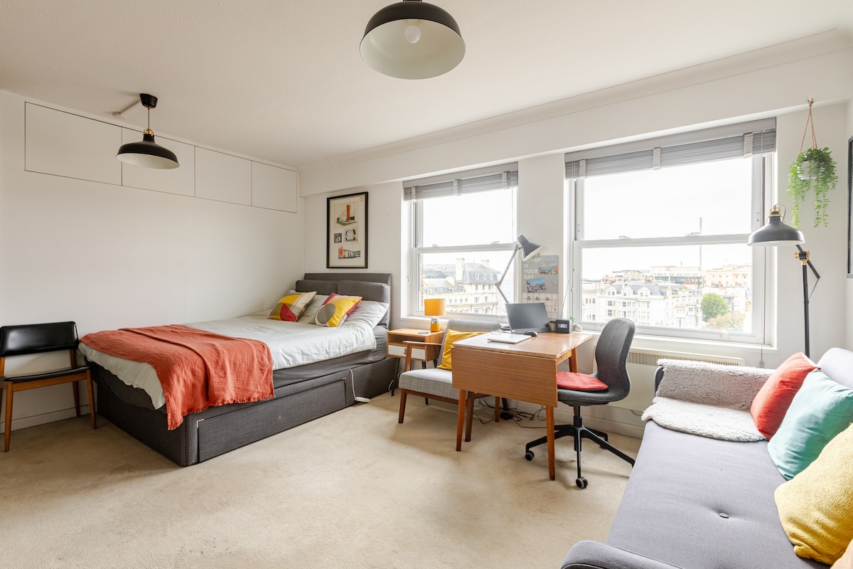 Apartamento moderno junto al mar, muy bien presentado y situado a pocos minutos del muelle de Brighton y del paseo marítimo, con ventanas que dan al precioso parque y fuente de Old Steine. Este apartamento consta de un amplio pasillo, 1 dormitorio, 1 baño y una gran sala de estar con cocina. TV (Netflix). Todas las principales atracciones y lugares de interés están a poca distancia a pie, fácil acceso al centro comercial, supermercados, restaurantes y cafeterías. - No se permiten mascotas - No se permite celebrar fiestas. - No se permite fumar - no fiestas