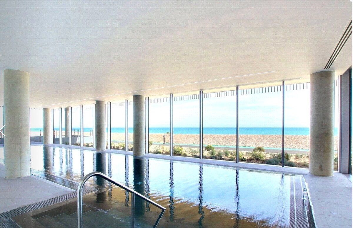 Impresionante apartamento moderno justo en la playa con vistas ilimitadas al mar y la playa. A 20 minutos de Brighton. Pasa un fin de semana relajante en este hermoso apartamento situado directamente en la playa, con toda una pared de ventanas de cristal que dan a la vista continuamente cambiante del mar y el cielo. Tienes fácil acceso a Brighton, Worthing y Shoreham en tren, autobús y coche. Baja las escaleras para desayunar temprano por la mañana o trae tu café de vuelta al balcón para disfrutar de la impresionante vista.