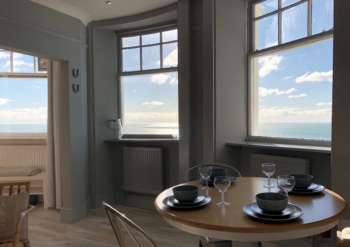 Enjoy a 5 star stay on Brighton seafront - stunning 180° sea views and balcony. Bottle of fizz on arrival 🍾 Avoid the stress/expense of Brighton parking with your own parking space. In an iconic Regency building by the beach, a short walk to the pier or Lanes and many restaurants, the flat has everything you need for a great mini break or longer stay for couples, friends or families. Fully equipped kitchen, slipper bath, 4 poster bed, master with superking or twins, washer & dryer, Sky TV.