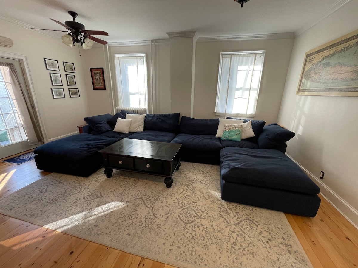 Amplio espacio privado en la planta baja ubicado en una mansarda victoriana de mediados del siglo XIX en el histórico Bay District del centro de Bay Shore. A pocos pasos de decenas de restaurantes, un parque de rociadores, playa y ferry. A 10 minutos a pie de LIRR. Apto para niños. Ten en cuenta que la familia del anfitrión vive en la casa principal. ¡Pregúntanos sobre complementos especiales para mejorar tu estancia!
