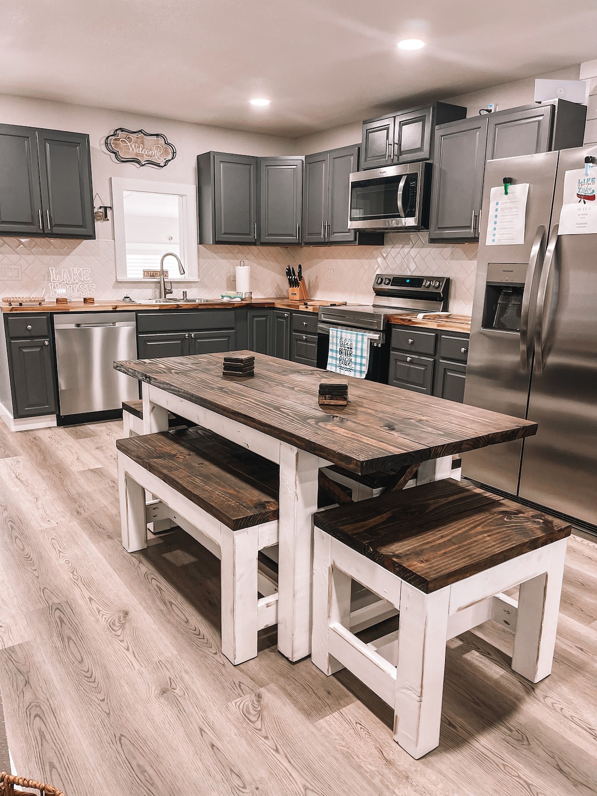 This home is nestled in a very secluded location on my rural family farm. Surrounded by trees, the home is well shaded and full of natural sights and sounds. The home is a spacious open concept, yet has cozy privacy for each guest bedroom. The interior decor is refined rustic and has furniture and accents that reflect the natural landscape. There are two bedrooms/1 bath up and a master bed and bath downstairs. The kitchen is well equipped and there are 2 decks for outdoor activities.