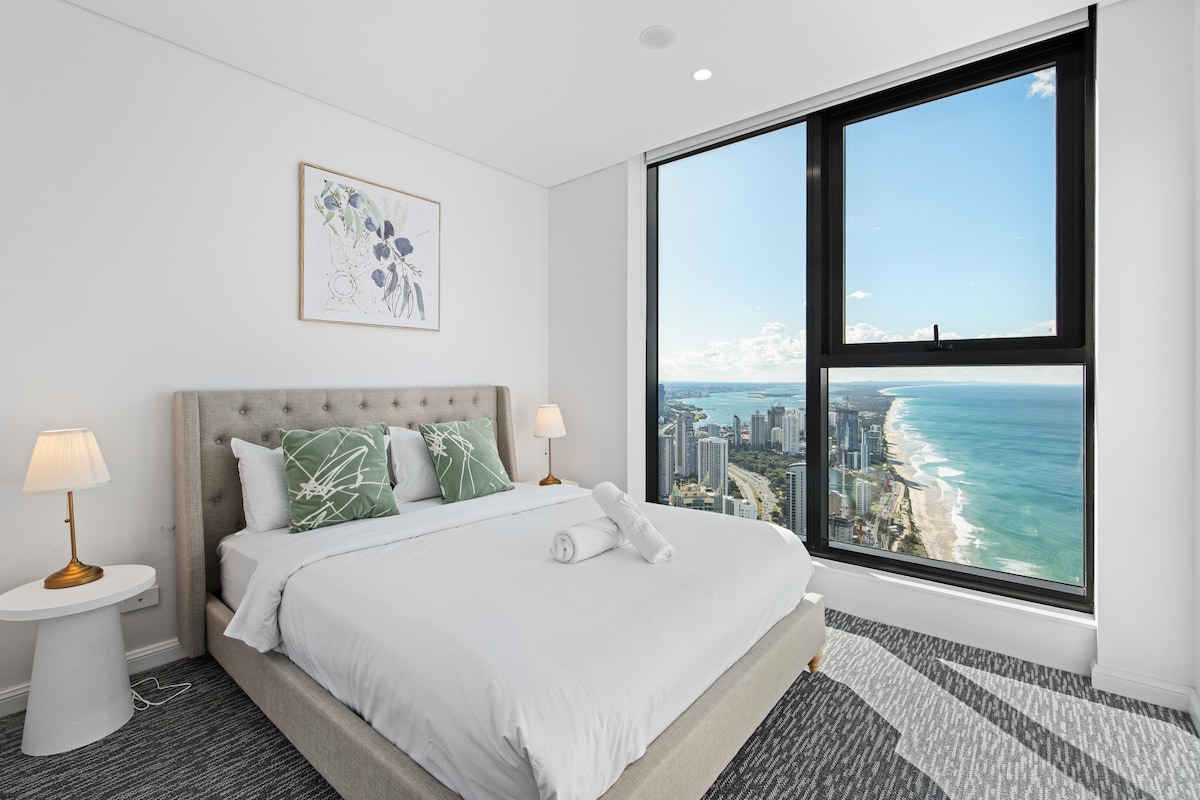💝 Why You’ll Love It 📍 Prime Esplanade Location – Steps to the beach, Cavill Avenue, shops & Surfers nightlife 🌅 Unmatched Ocean Views – Watch sunrise over the sea from your private balcony 67th-Floor 🛏️ 2 Bedrooms with Hotel-Style Comfort – Includes a Master Suite with Walk-in Robe & Ensuite | A/C Throughout 🌿 Private Glass-Enclosed Balcony – Sip your morning coffee above the skyline or unwind at sunset 🏊 5-Star Resort Facilities – gym, sauna & outdoor terrace (Level 33)