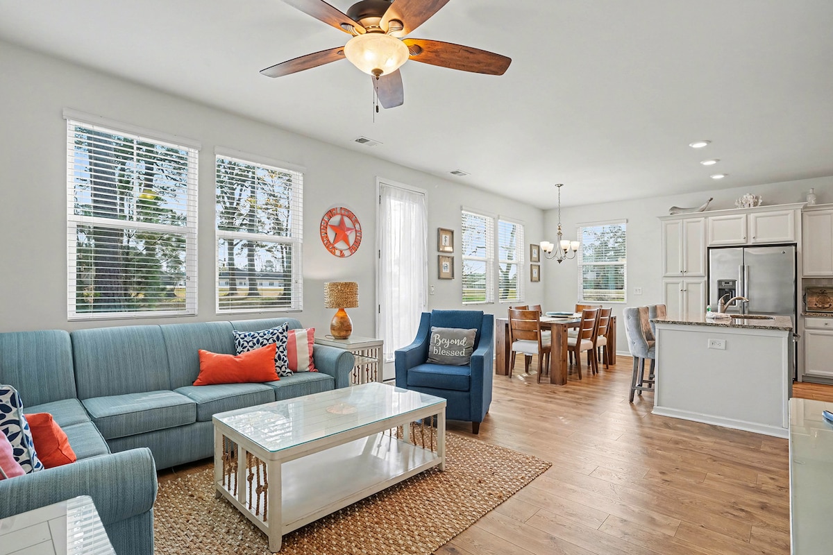 Recientemente construida y bellamente decorada, esta casa está ubicada en el corazón de Myrtle Beach en la avenida 48 N. Moderna, espaciosa y perfectamente ubicada para familias, viajes de golf o escapadas de fin de semana. A poca distancia de las verdes colinas del Myrtlewood Golf Club, también está a 1 minuto en auto del famoso Broadway at the Beach (compras, diversión para los niños, paseos y vida nocturna), ¡y a solo 5 minutos de la playa! Disfruta de lo mejor de Myrtle Beach desde una ubicación inmejorable.