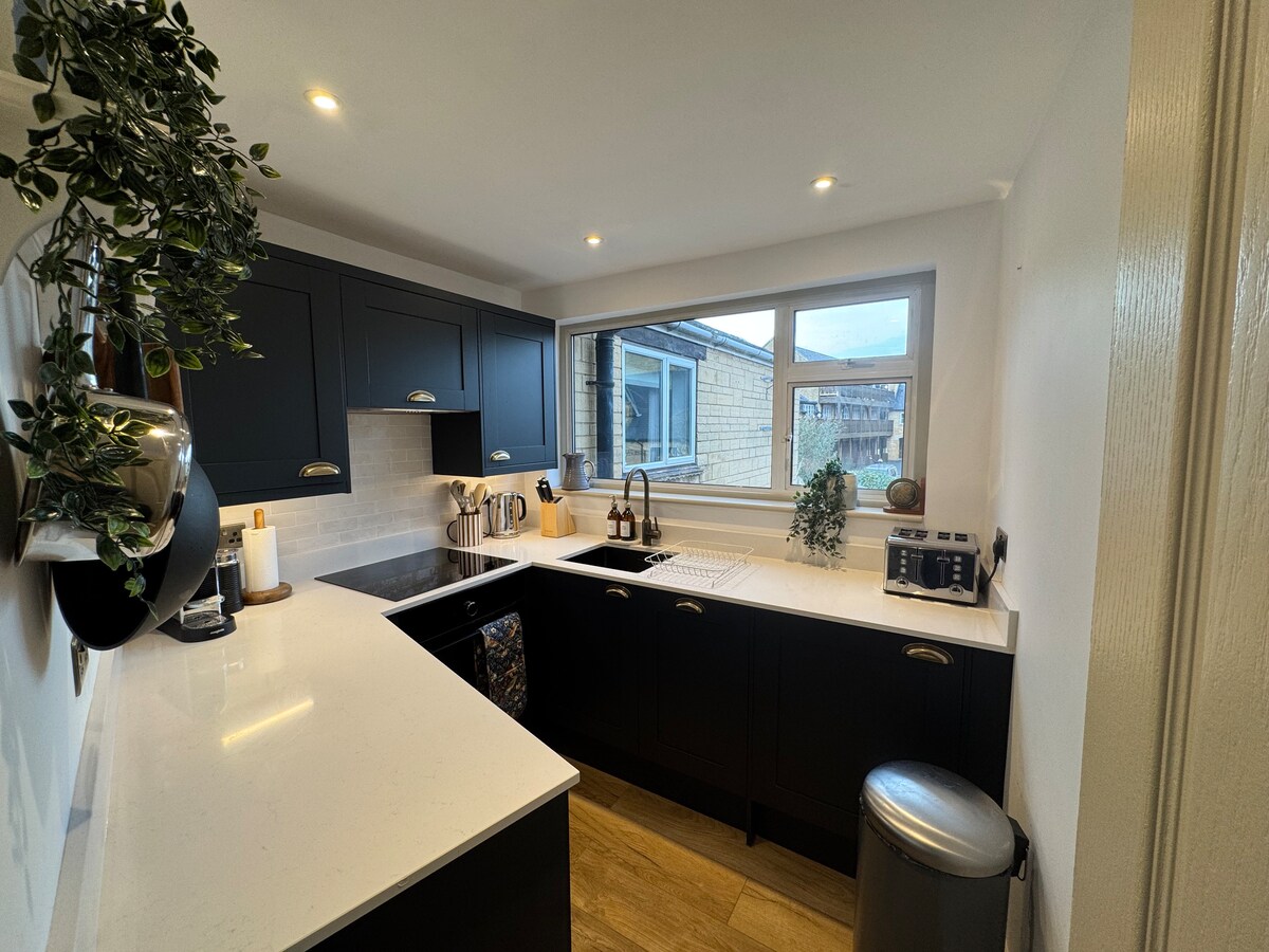LOCATION!! Bolthole de lujo en el corazón del pueblo, a solo unos pasos de la calle principal más hermosa de los Cotswolds. Impresionantes paseos desde la puerta. Retiro romántico perfecto: acogedor quemador de leña, baño con encimera, calefacción UF, cama tamaño king. Cocina/comedor/ sala de estar de planta abierta para trabajar (internet rápido) y noches acogedoras. Entrada privada grande y cerrada, cargador para vehículos eléctricos y patio exterior. Base ideal para caminar y recorrer los Cotswolds (en auto o a pie). Anexo en planta baja de la casa familiar. Entrada privada. Un perro bienvenido.