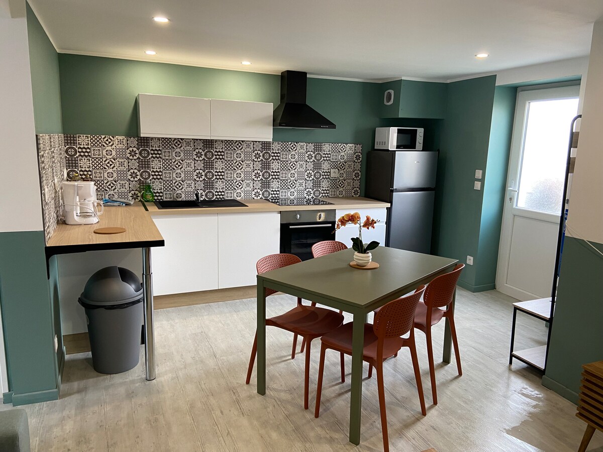 Découvrez le charme moderne de ce gîte entièrement rénové et équipé avec tout le nécessaire pour un confort absolu ! ( allée commune extérieure sous surveillance vidéo ) pouvant accueillir jusqu'à 6 personnes ( un lit deux personnes, un canapé convertible et un matelas gonflable intex ) Le nombre exact de personnes présentes est à préciser lors de la réservation. De nombreuses activités sont à découvrir dans notre belle région. Au plaisir de vous accueillir.. Céline et Manuel